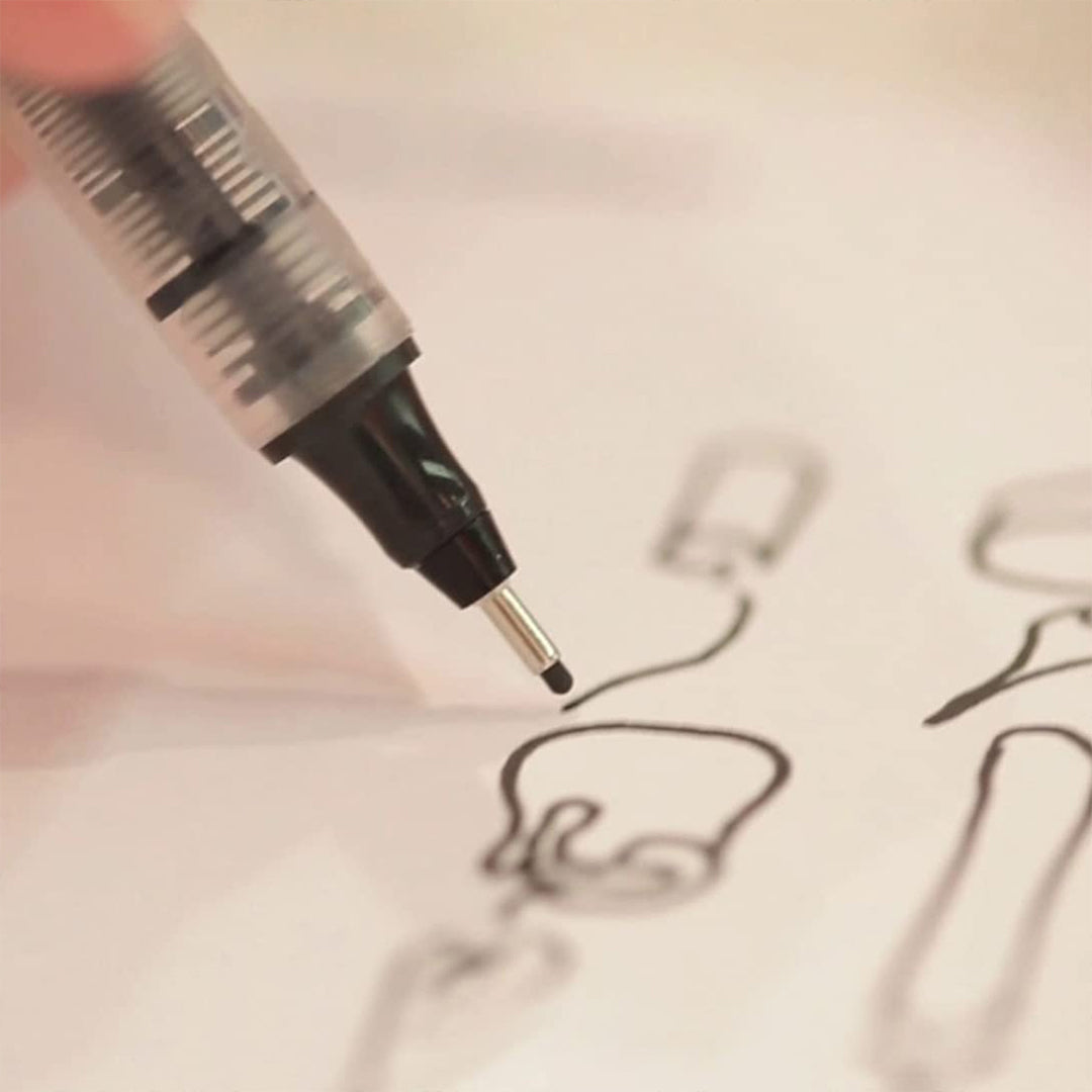 - Felt tip with precision calibration. 6mm long metal guide tip, specially designed for writing / drawing in a template. High-density, anti-evaporation plastic body with window for viewing the contents of the ink tank.